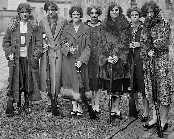 Yesterday on Twitter I was pointed to an excellent group portrait on Shorpy, one of my favorite sites around. One thing led to another, and the 1925 girls’ rifle team of Drexel Institute began talking. You know how it is when ladies get together. From left to right: