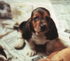 In Chatauqua, my mother fell in love with a basset hound named Harriet, who just happened to be “preggers.” Mom was ready to drive from southeastern Ohio to Washington, D.C., to have one of Harriet’s puppies. Somehow, leveler heads prevailed. In October we drove deep into the ridge roads, an hour or more away in McConnellsville, to meet a litter of eleven bassets. I remember being let into a small, dark shed with a single lightbulb dangling from the ceiling.
